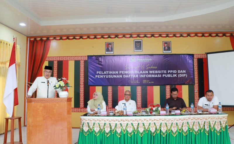 Meulaboh – Pemerintah Kabupaten Aceh Barat, melalui Dinas Komunikasi, Informatika dan Persandian, Rabu (13/07/2023), menggelar pelatihan Pejabat Pengelola Informasi dan Dokumentasi (PPID). Kegiatan itu diikuti oleh Admin/Operator PPID Pelaksana lingkup Satuan Kerja Perangkat Kabupaten (SKPK) Aceh Barat.