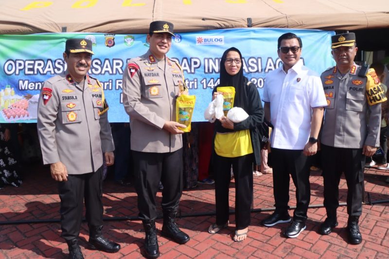 “Alhamdulillah hari ini Polda Aceh bekerja sama dengan instansi terkait lainnya menggelar pasar murah dengan total 1.500 paket, yang terdiri dari beras, gula, telur, minyak goreng, dan bawang merah,” kata Ahmad Haydar, dalam keterangannya saat meninjau pasar murah tersebut.