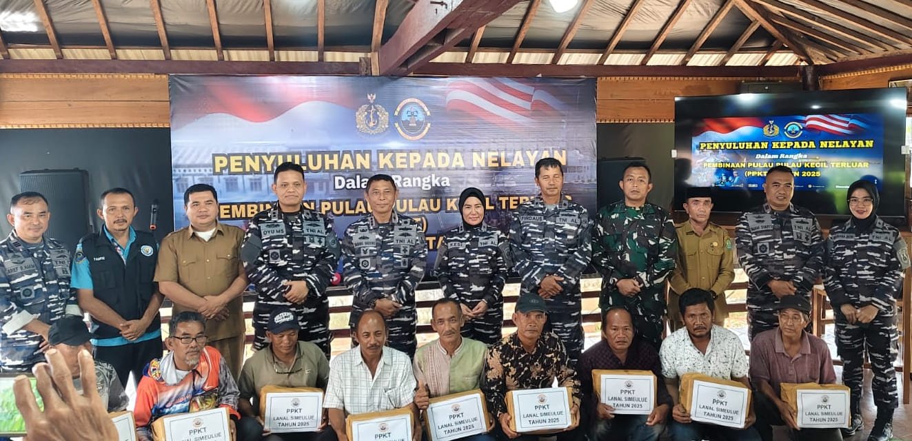 Simeulue – Pangkalan TNI Angkatan Laut (Lanal) Simeulue melaksanakan kegiatan penyuluhan bagi para nelayan dalam rangka Program Pembinaan Pulau-pulau Kecil Terluar (PPKT) 2025. Kegiatan ini berlangsung di Markas Komando Lanal Simeulue, Senin, (20/5/2025).