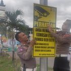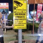 Banda Aceh – Personel Ditlantas Polda Aceh memasang papan rambu peringatan _electronic traffic law enforcement_ (ETLE)…
