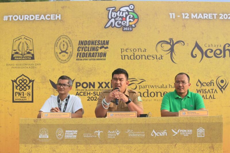Aceh Besar – Setelah sukses menggelar Tour de Aceh 2022, tahun ini Dinas Kebudayaan dan Pariwisata (Disbudpar) Aceh kembali menggelar event sport tourism (wisata yang dipadukan dengan aktivitas olahraga) tersebut. Kali ini, kegiatan tersebut diikuti atlet nasional dan mancanegara.