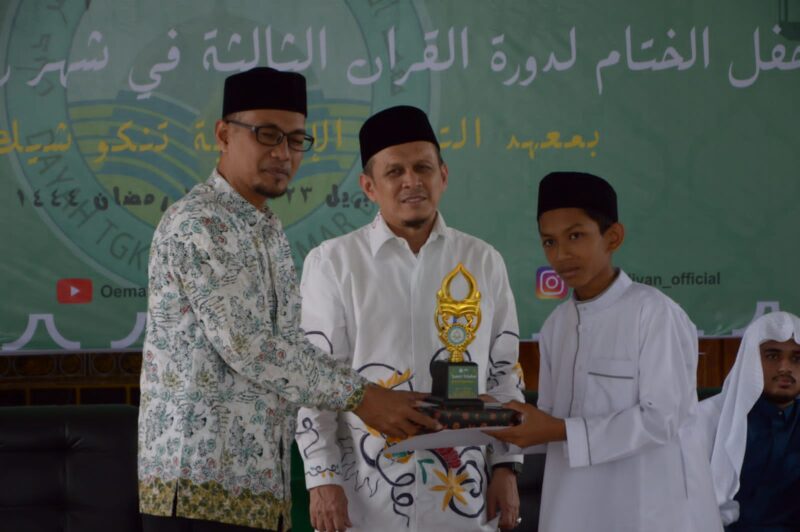Kota Jantho – Pejabat (Pj) Bupati Aceh Besar yang diwakili Kepala Dinas Pendidikan Dayah Tgk. Adi Darma, SPd MPd menghadiri acara penutupan kegiatan Tahsin dan Tahfizh Al Quran yang diselenggarakan oleh Pesantren Modern Tgk Chik Oemar Diyan di Gampong Krueng Lamkareung, Kecamatan Indrapuri, Aceh Besar, Sabtu (15/4/2023) .